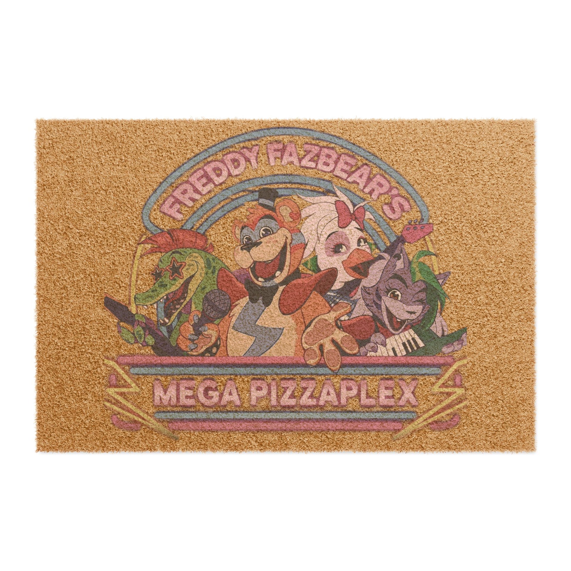 Welcome visitors with an edge using this Five Nights @ Freddy's doormat that brings the animatronic chaos right to your threshold. Featuring Freddy, Chica, Monty, and Roxy in striking detail, it's a fearless declaration of your devotion to the franchise. Whether you're a hardcore gamer or caught the movie's dark appeal, this doormat transforms your entryway into ground zero for FNAF fandom. Bold, unapologetic, and unmistakably yours—because true fans don't do subtle.